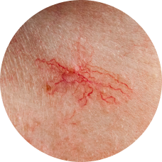 At the center of the spider vein, there is a small point from which thin blood vessels diverge in different directions. By appearance, they may resemble spider legs.
